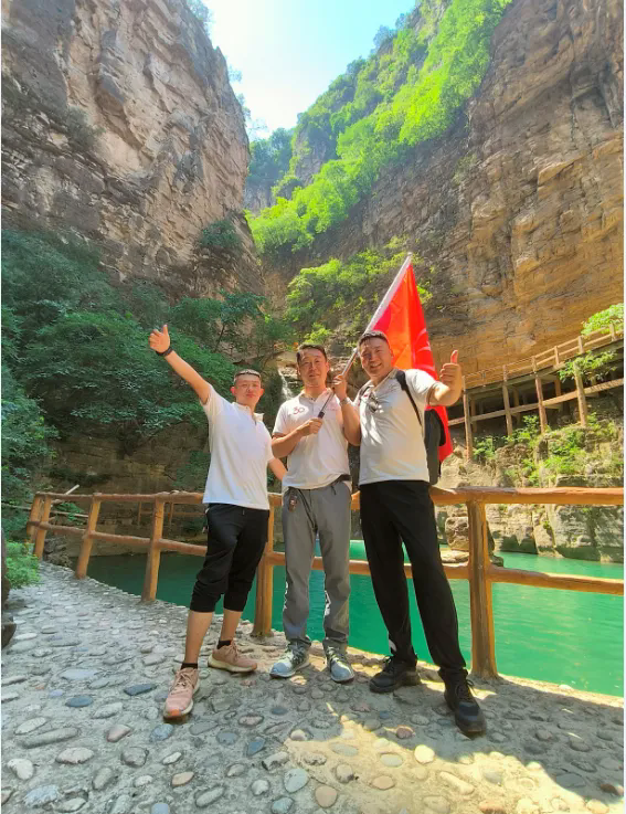 清风峡,山青水绿,奇石耸立,草木郁郁,溪流潺潺。山水环绕之间,石阶蜿蜒,美景随处可见。在这里,我们被大自然的壮观景象所震撼,仿佛置身于一幅美丽的画卷之中。我们沿着山路前行,大家时而奋力登攀,时而驻足欣赏,浏览着沿途的风景,感受着大自然的鬼斧神工。景区内的游玩让我们忘记了工作的疲惫,也让我们更加珍惜眼前的美好时光。