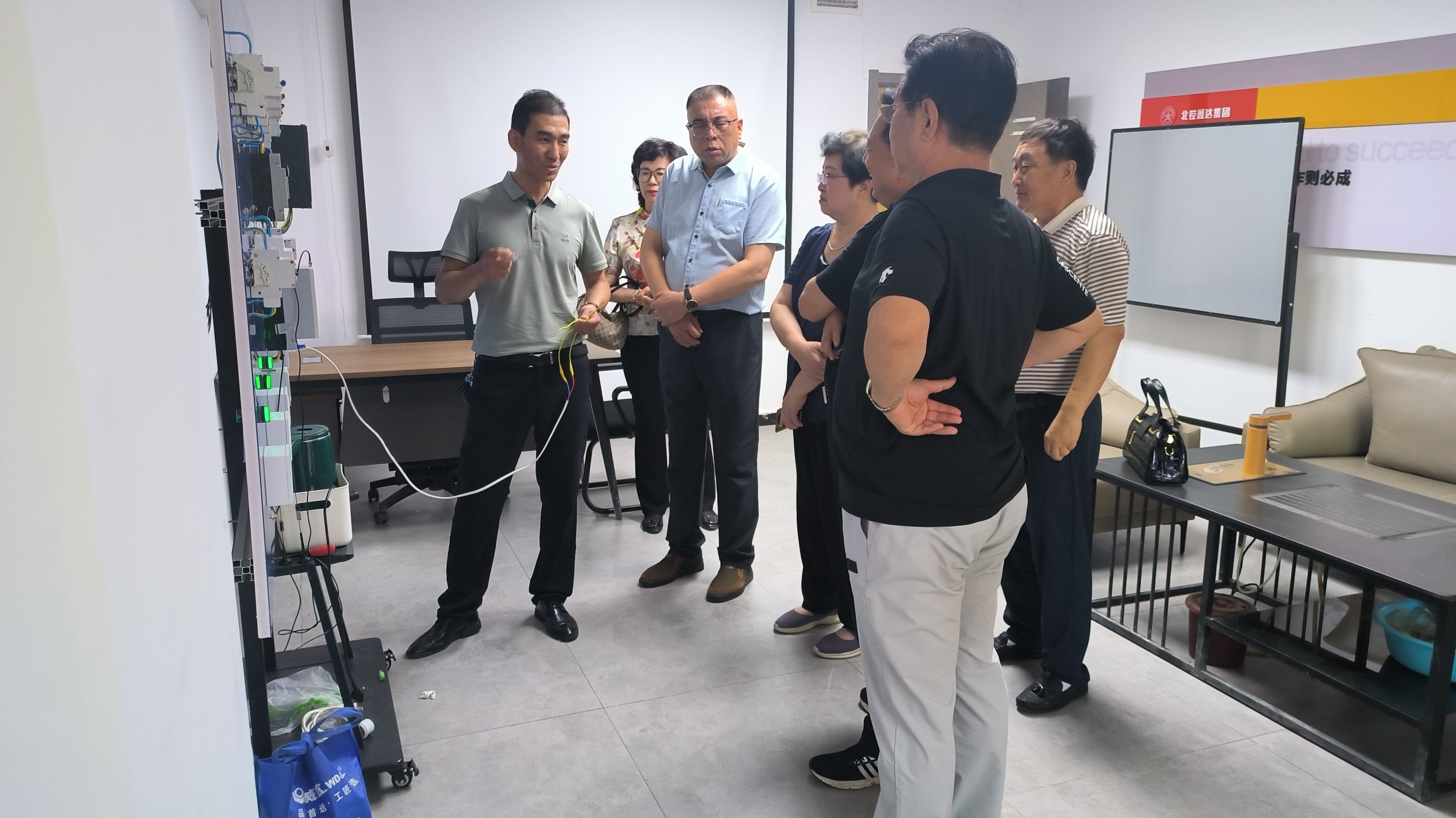 协会领导一行抵达我公司后,北控鑫达集团公司董事长何建立带领高层领导团队热情接待,并引领客人参观了公司的展厅、劳模创新工作室、工会活动室和产品展示区等,并为各位领导进行了智能安全用电设备演示。在参观过程中,协会领导对我公司的生产规模、技术实力和市场布局给予了高度评价,并对公司的创新能力和发展潜力表示赞赏。