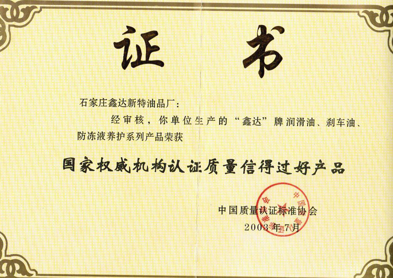 2003国家权威机构认证质量信得过